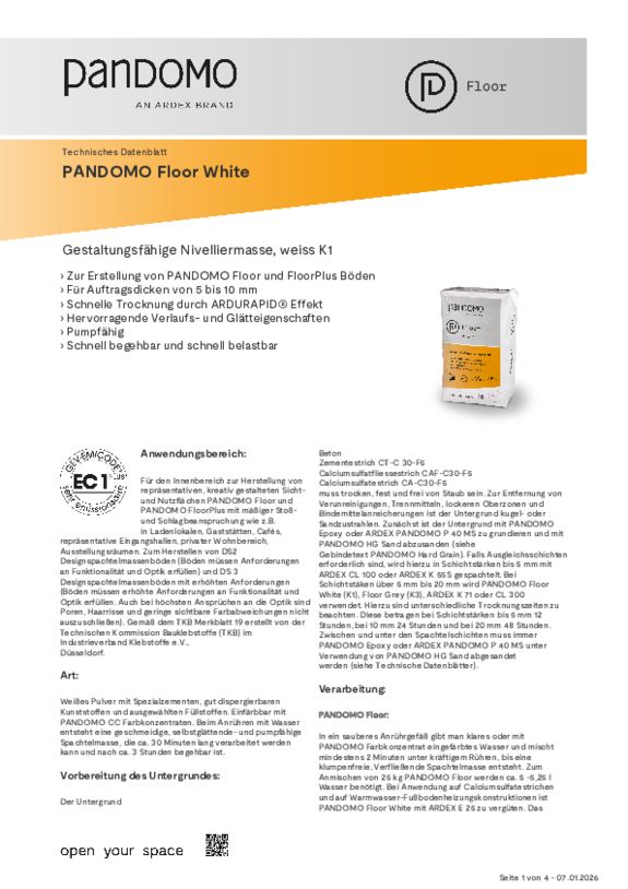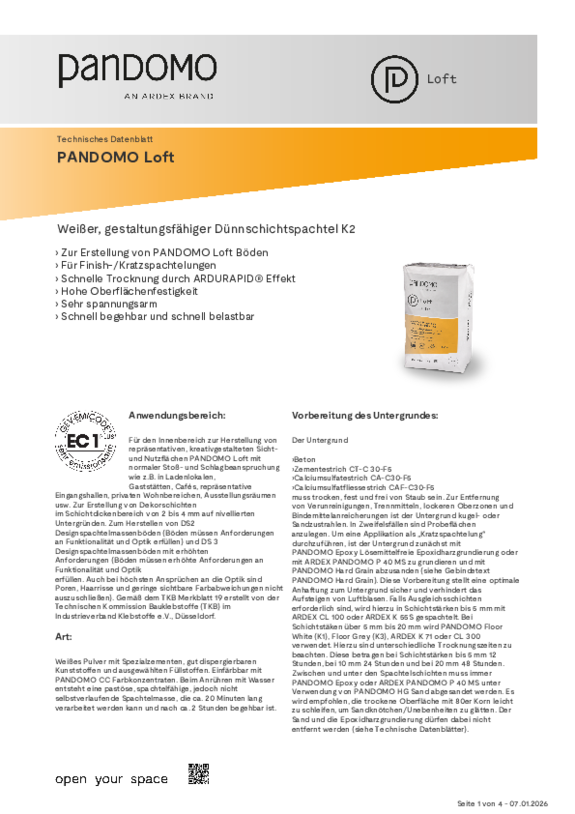PANDOMO kann auf festen, rissfreien Oberflächen angewendet werden. Bei den Bodenprodukten eignen sich besonders Estriche von ARDEX als Untergrund, oder Hohlböden, z.B. von Lindner. Eine Anwendung über vorhandenen Fliesen ist aber auch möglich. Auch Gipskartonwände, wedi-Platten, Arbeitsplatten, dreidimensionale Objekte, Möbel oder Türen können mit PANDOMO Spachtelmassen eine individuelle Oberfläche bekommen. Beim diffusionsoffenen Kalk-Lehmputz PANDOMO Clay ist auch eine Anwendung über Stampflehm sinnvoll. Falls Sie sich unsicher sind, ob PANDOMO für Ihr Projekt geeignet ist, sprechen Sie einfach Ihren PANDOMO Partnerbetrieb vor Ort an.