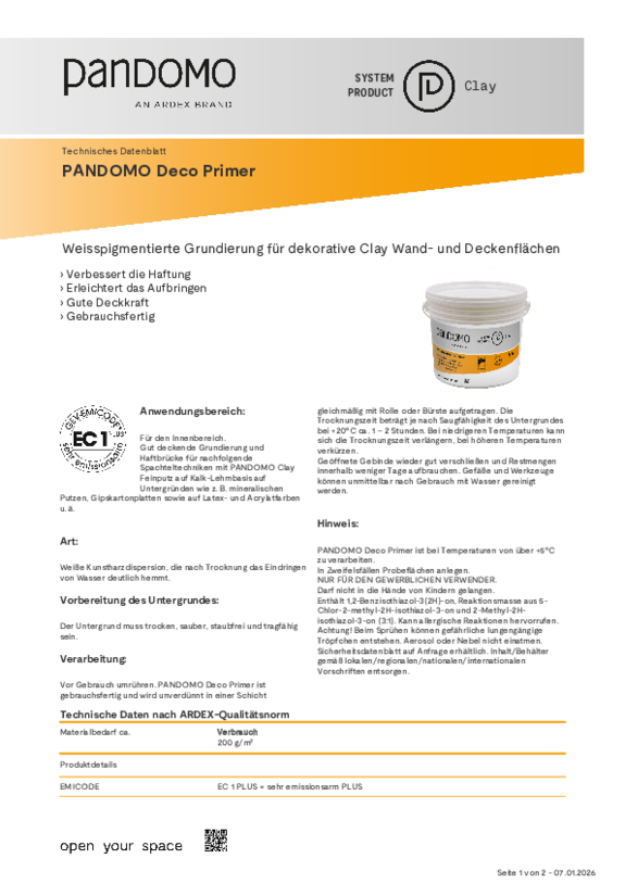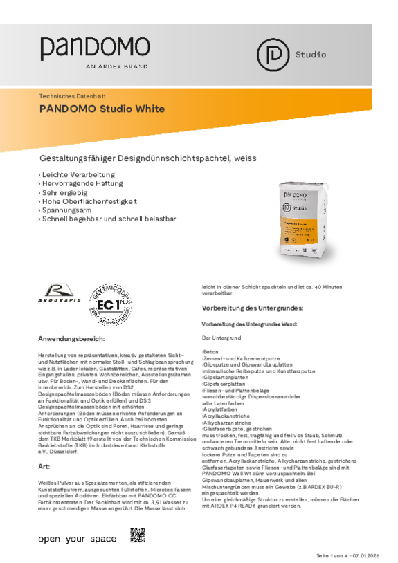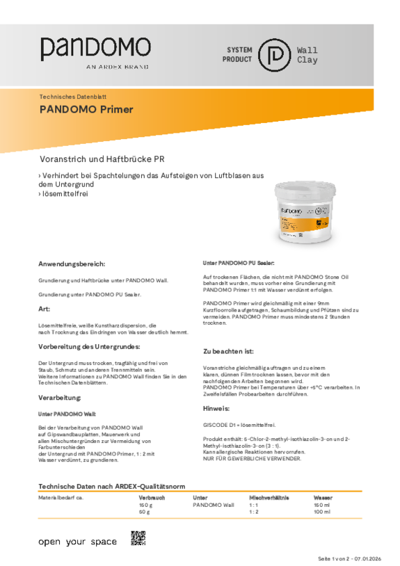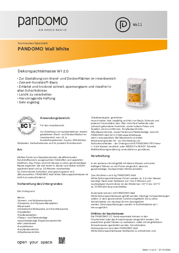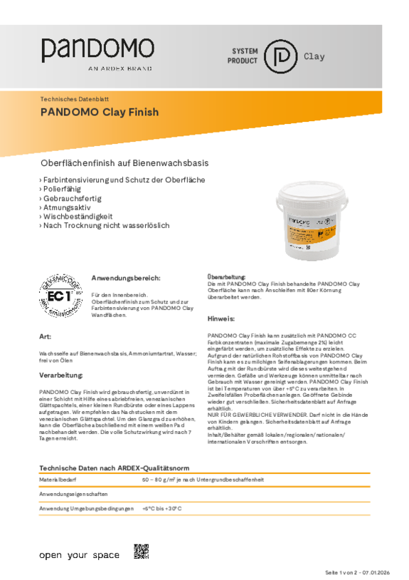 Für die Verarbeitung von PANDOMO Clay und PANDOMO Wall wenden Sie sich bitte an den Maler- oder Stuckateur-Fachbetrieb Ihrer Wahl.