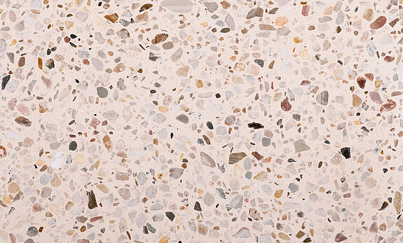 Herstellen von geschliffenen Dekorböden in Terrazzo-Optik im Innenbereich mit schneller Begehbarkeit und früher Anfangsfestigkeit im Verbund.